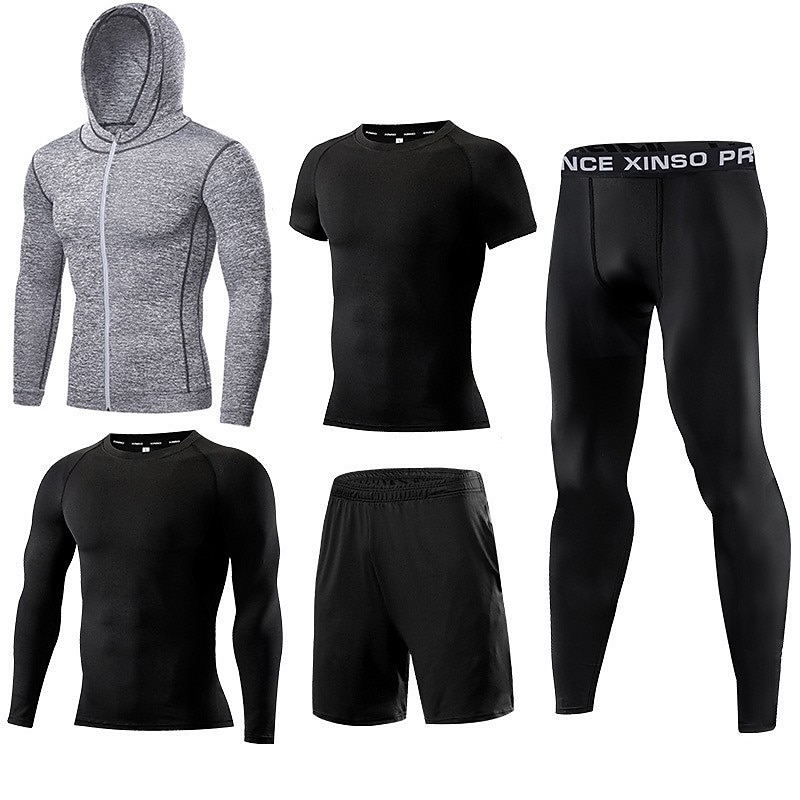 Men's Activewear Set Workout Outfits Athletic Long Sleeve Thermal Warm Breathable Quick Dry Fitness Gym Workout Running Sportswear Activewear Solid Colored Black White Blue 11