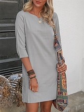 More information about Women's Pink Blue Gray Summer Spring Midi Dress Linen-Inspired Dresses Casual Dress Shift Dress Basic Modern Daily Weekend Loose Fit Plain Crew Neck