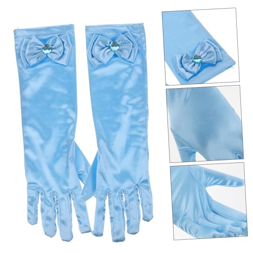 VANZACK 1 Pair Girl Bowknot Satin Gloves for Elegant Dress Up Accessories for Halloween Party Cosplay Comfortable Long Fingered Design for Little Princesses 1
