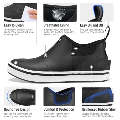 HISEA Men's Deck Boots Waterproof Ankle Rain Boots Neoprene Saltwater Fishing Boot Outdoor 6