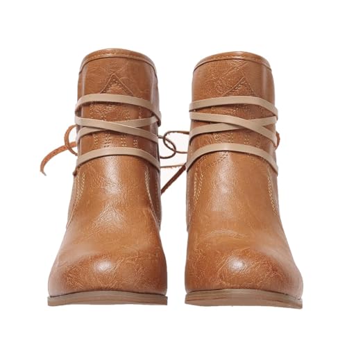 HOT ! Womens Ankle Booties Vintage Slip on Round Toe Chunky Stacked Mid Heel Booties Comfy Outdoor Western Dress Shoes