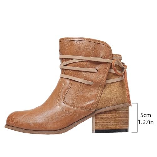 Womens Ankle Booties Vintage Slip on Round Toe Chunky Stacked Mid Heel Booties Comfy Outdoor Western Dress Shoes 5