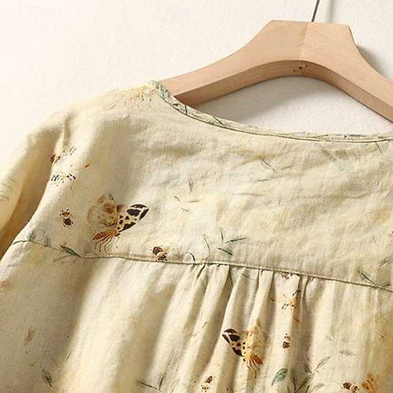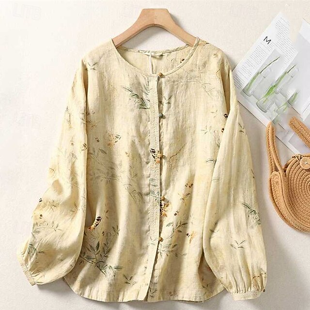 More information about Women's Shirt Floral Daily Stylish Basic Long Sleeve Crew Neck Regular Tops Work Daily Holiday Buttons Print Beige Spring Fall