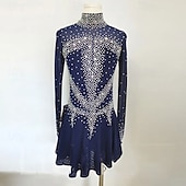 More information about Figure Skating Dress Women's Girls' Ice Skating Dress Dark Navy High Elasticity Training Competition Skating Wear Classic Crystal / Rhinestone Long Sleeve Ice Skating Figure Skating