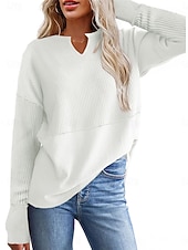 More information about Women's Sweatshirt Casual Plain Street Dailywear V Neck Long Sleeve White Blue Khaki Fall Winter