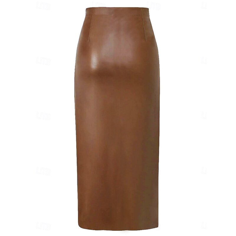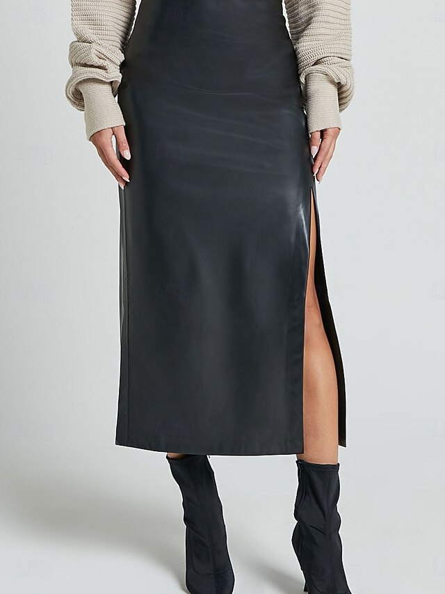 More information about Women's Skirt Bodycon Fashion Midi High Waist Skirts Plain Split Ends Micro-elastic Street Daily Black Brown Beige Spring Polyester Faux Leather