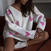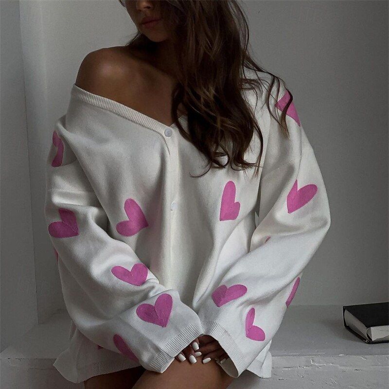 More information about Women's Sweater Cardigan Fashion Streetwear Daily Heart Ribbed V Neck Knitted Long Sleeve Regular Tops Knit Holiday Going out Weekend Pink Fall Winter