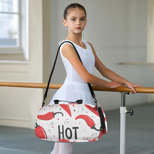 HOT ! Kids Sports Duffel Bag for Boys & Girls - Red Chili Peppers Pattern 100% Polyester Gym Bag with Separate Shoe Compartment, Adjustable Shoulder Strap, Compact Travel & Workout Gear Bag