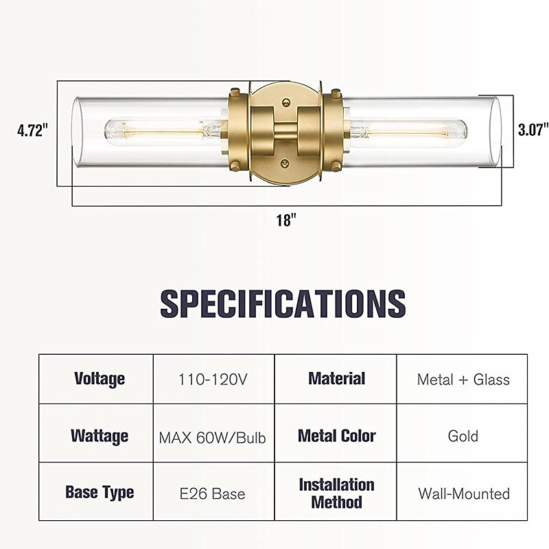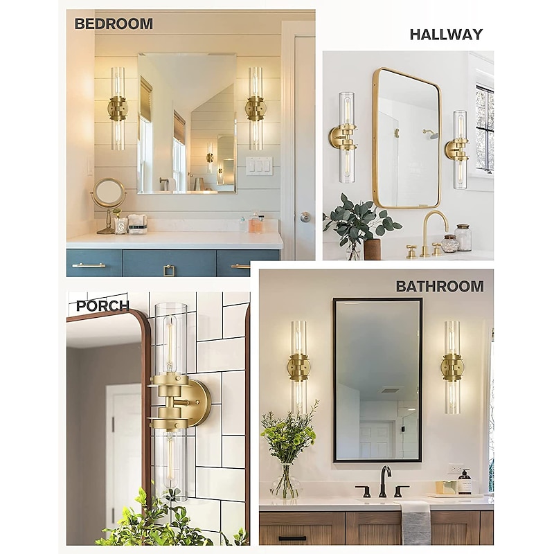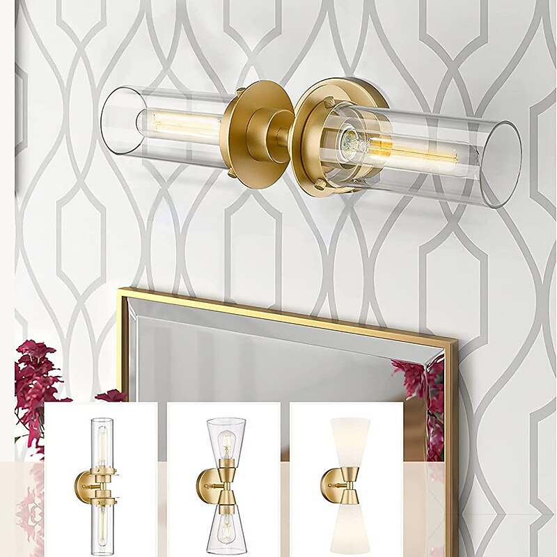HOT ! Lightinthebox Bathroom Light Fixtures Over Mirror, Gold Vanity Lights in Clear Glass Indoor Wall Sconce, Modern Cylinder Wall Light Up and Down Wall Mount Lamp for Bathroom, Bedroom, Hallway 110-240V