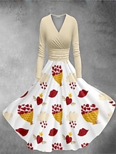 More information about Women's Valentine Heart Dress Graphic Print V Neck Dolman Sleeve Midi Dress Vintage Valentine's Day Daily Long Sleeve Spring Fall