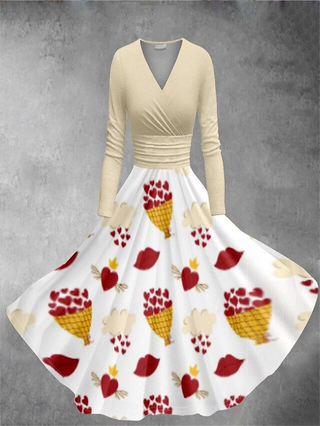 Women's Valentine Heart Dress Graphic Print V Neck Dolman Sleeve Midi Dress Vintage Valentine's Day Daily Long Sleeve Spring Fall 9