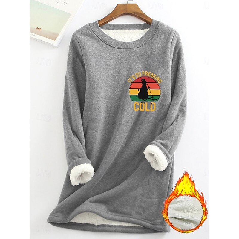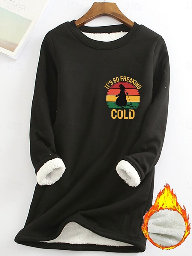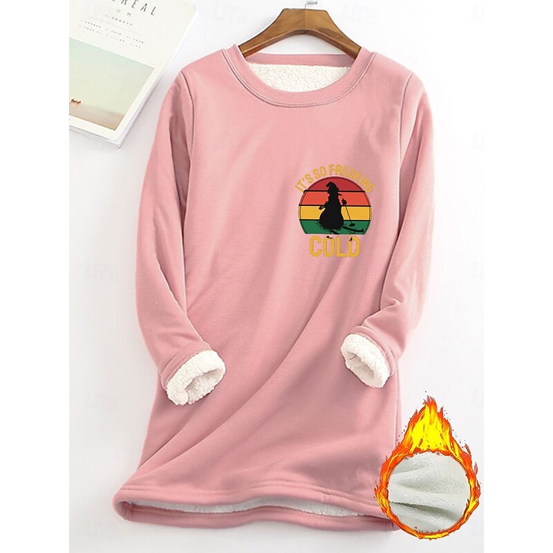 More information about Women's Pullover Sweatshirt Fleece Lined Warm Pajamas Graphic Warm Casual Fuzzy Long Sleeve Crew Neck Round Neck Long Tops Street Casual Black Pink Dark Pink Blue Gray Spring Fall Winter