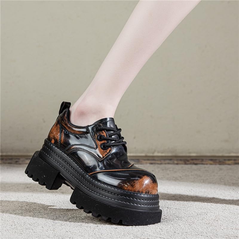 Vintage Distressed Leather Round Toe Loafers with Thick Sole Comfortable Casual Platform Shoes for Walking Daily Workwear and Stylish 4 Inch Height Boost 6