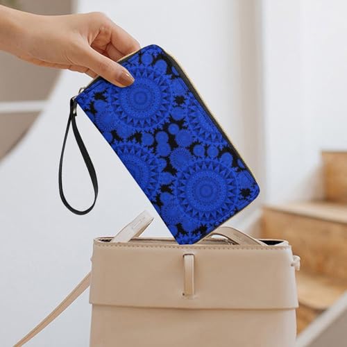 HOT ! Women's High Capacity Travel Wallet, Water-resistant, ID Pockets, Multiple Card Slots, Blue Flower Tie Dye Design
