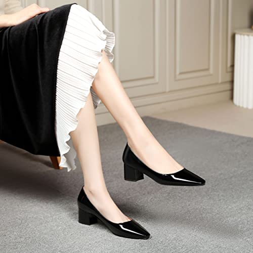SKYSTERRY Womens Square Toe Fashion Slip On Solid Wedding Patent Chunky Low Heel Pumps Shoes 2 Inch 5