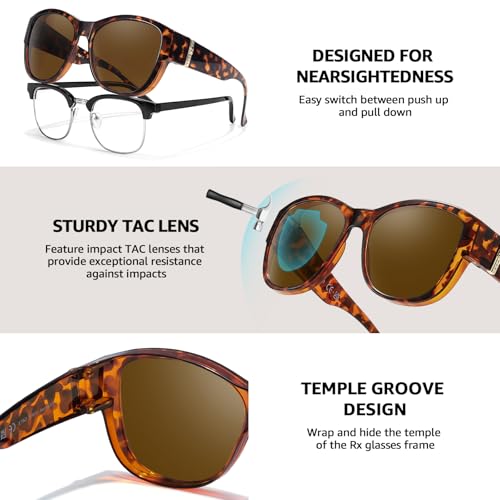 • FIT-OVER SUNGLASSES: Cleverly designed, these sunglasses easily fit over most frames for seamless sun protection. They can also be worn on their own, providing a versatile solution for those who seek both style and practicality