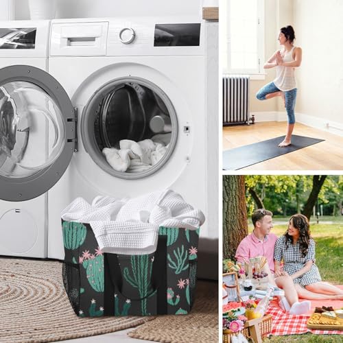 Cute Cactus Black Large Beach Bag Waterproof Beach Tote Bags for Women Travel Gym Pool 5