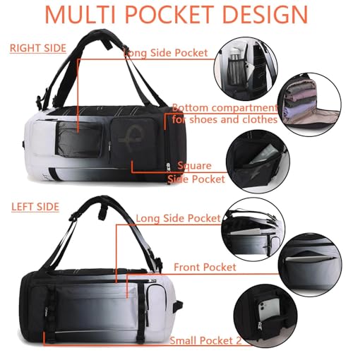 • ⭐【Use as Duffel or Backpack】👍 This 2-way gym backpack is available two back ways for you to adjust freely. BE SMART gym backpack for men is designed with hideaway padded adjustable shoulder straps which can be easily stored away in back panel, transforming this sports backpack to hand bag. It is perfect for use as gym bag, sports bag, travel bag, weekend tote bag, swim bag, hospital bag, airplane bag etc.