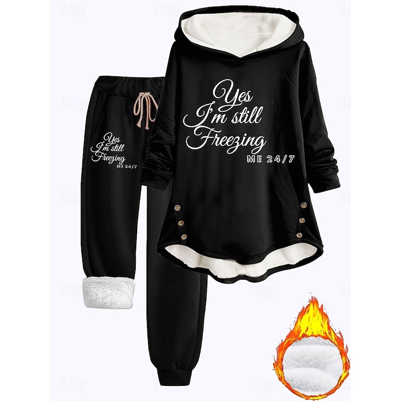 More information about Women's 2 Pieces Fluffy Pyjama Set Long Sleeve Top and Pant Text Print Comfort Casual Home Wear Drawstring Solid Cozy Winter