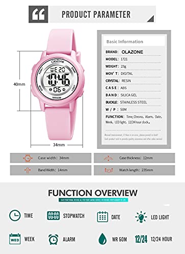 • FUNCTIONS: Appeals to 7+ girls, stopwatch, 12/24H time mode, and LED backlight functions to make it perfect for all kinds of sport and daily use.