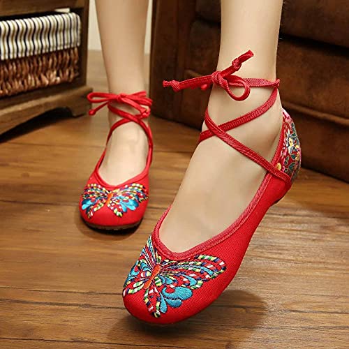 Beijing's Cloth Shoes Women's Shoes in The Four Seasons of The Colorful Butterfly Tendon Bottom Chinese Style Women's (Color : Green Size : Code 40) (Green Code 36) 5