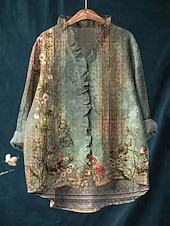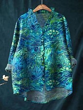 More information about Women's Boho Shirt Graphic Animal Elegant Bohemia Active Long Sleeve Regular Tops Daily Holiday Going out Ruffle Blue Green Light Blue Summer Spring Fall