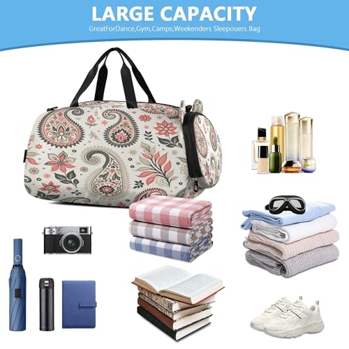 HOT ! Paisley Pattern Youth Sports & Travel Duffle Bag with Shoe Compartment,Waterproof Gym Bag for Girls and Boys (Overnight Essentials Organizer)