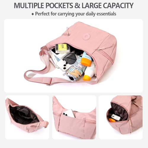 HOT ! Nylon Crossbody Bags for women,Crescent Bag Luna Bag Large Hobo Crossbody Purse Casual Dumpling Cross Body Bags (Pink)