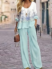 More information about Women's Vacation Daily Stylish Shirt Blouse Sleeveless 3/4 Length Sleeve Round Neck U Neck Floral Graphic Print Outdoor Vacation Casual Blue Green Summer Regular Fit