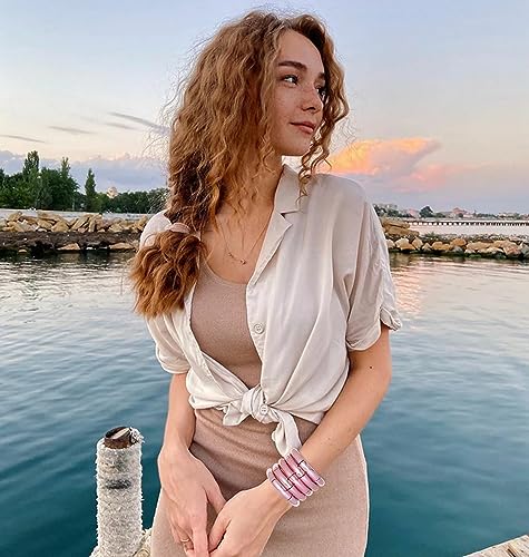 FUNOJOY Summer Bangles Bracelets for Women Chunky Curved Stackable Bracelets Acrylic Beaded Stretch Bracelets for Teen Girls Gift 5