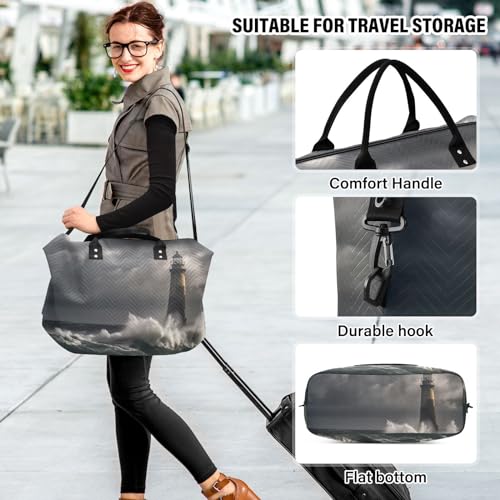 HOT ! Large Travel Duffel Bag, Lighthouse Waves Dark Sport Tote Gym Bag, Shoulder Weekender Overnight Bag for Women Men, Carry On Luggage with Toiletry Bag