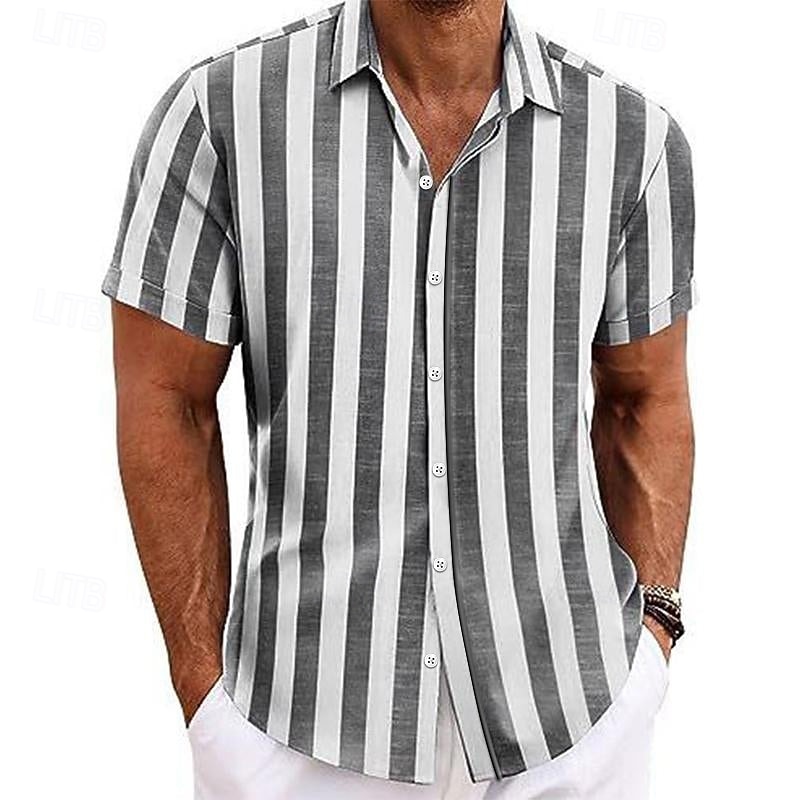 More information about Men's Shirt Linen Shirt Summer Shirt Beach Shirt Summer Hawaiian Shirt Solid Color Vacation Street Blue Gray Short Sleeve Fold-over Collar Spring & Summer Clothing Apparel Patchwork