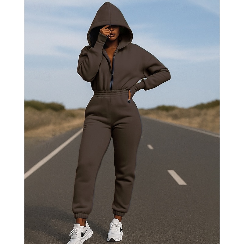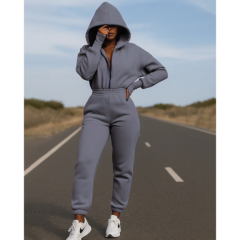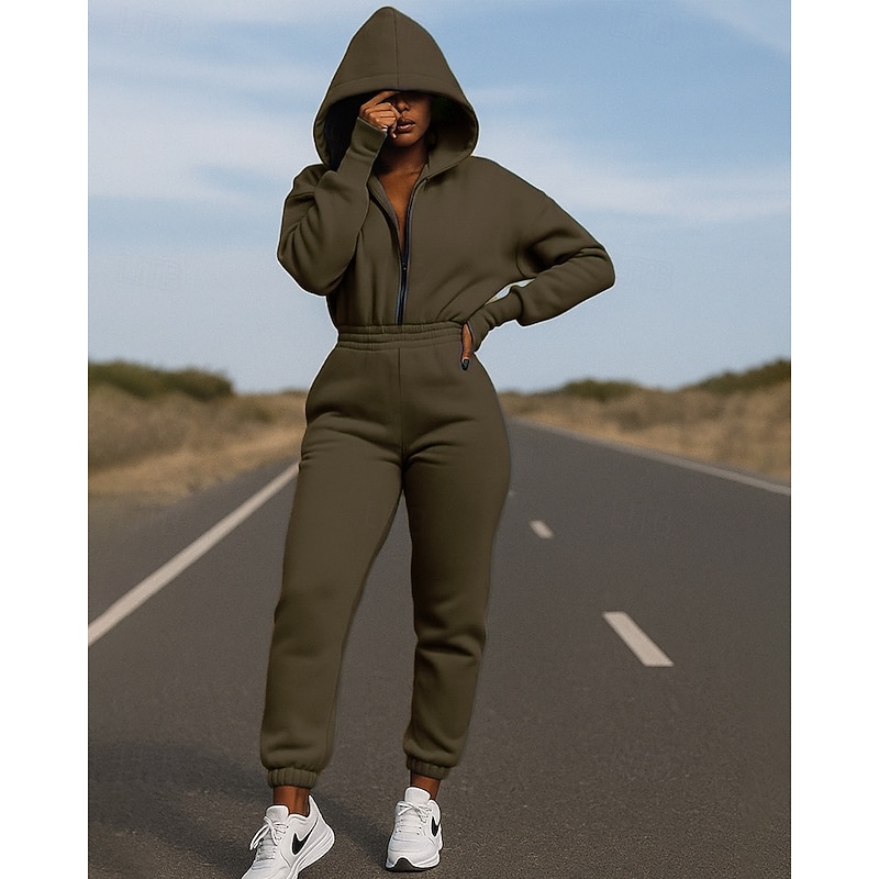$28.99 - Women's One-piece Hoodie Jumpsuit Sets Zip Up Solid Colored Clothing Suit Fall White Army Green Hiking Vocation Outdoor Long Sleeve Sport Activewear Micro-elastic Regular Fit 2025. Shop for cheap Tracksuits online? Buy at lightinthebox.com on sale today!