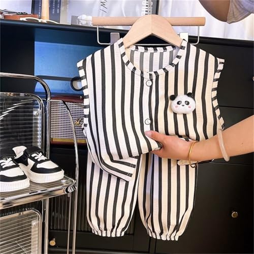 HOT ! Kids Boys Girls Cotton Linen Activewear Set Striped Sleeveless Top and Pants Athletic Matching Set Panda Applique Loung𝐞wear