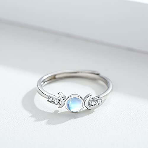 CUOKA MIRACLE Triple Goddess Ring - 925 Sterling Silver Moon Goddess Ring With Synthetic Moonstone and Cubic Zirconia - Adjustable Wedding Band 5