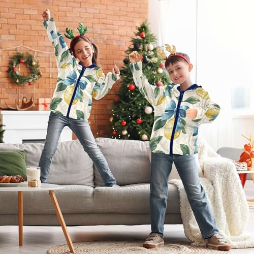 trending ! Lemon Blue Ribbon Pattern Toddler Fleece Jacket Girl Boys Hooded Fleece Jacket Coat heated Outwear Zip-up 3-10T