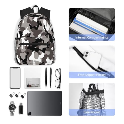 BREAUX Black Grey White Camo Print Lightweight And Comfortable Duffel Bag, Casual Daypack, Multipurpose Backpack 7