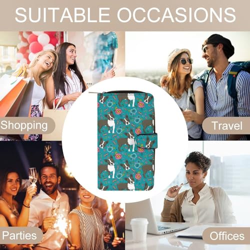 Boston Terrier French Bulldog Womens Wallet Leather Card Holder Purse RFID Blocking Bifold Clutch Handbag with Zipper Pocket 6
