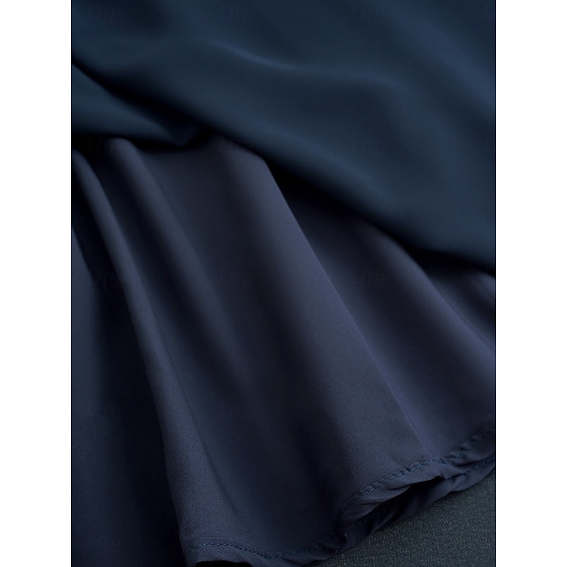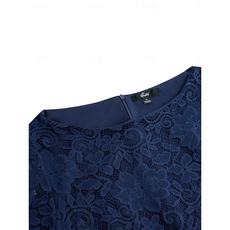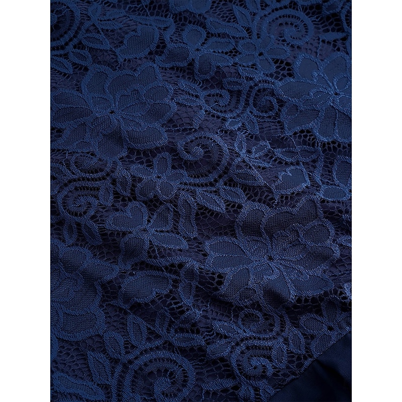Highlights [Fabric]: Expertly constructed with a blend of chiffon and contrast lace, this dress offers a sophisticated and breathable fabric choice. The chiffon skirt drapes gracefully, while the intricate lace on the upper part adds a touch of elegance and femininity. [Fit]: Designed in a classic A-line silhouette, this dress provides a flattering and comfortable fit for any body type. The regular fit ensures ease of movement and a polished look for formal occasions. [Design Highlights]: Featuring delicate lace patterns and a ruffle hem, this dress embraces elegance with its timeless crew neck and short sleeves. The contrast between lace and chiffon enhances its refined appearance, while the deep navy blue color exudes sophistication. [Occasions]: Perfect for weddings, cocktail parties, and other formal or semi-formal occasions, this dress effortlessly transitions from day to evening events. Its chic design makes it a versatile addition to any wardrobe, promising a stylish and elegant presence. [Size Range]: Available in a range of sizes from S to XXL, this dress caters to various body types, ensuring a comfortable and elegant fit for every wearer.