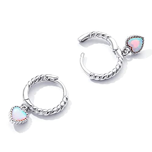 HOT ! Colorful Opal Heart Dangle Hoop Earrings for Women Girls 925 Sterling Silver Rainbow Opal Small Huggie Hoops Cartilage Earring Dangling Charm Drop Hinged Cuff Dainty Jewelry Gifts for Sensitive Ears