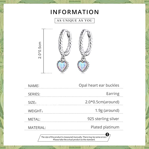 Colorful Opal Heart Dangle Hoop Earrings for Women Girls 925 Sterling Silver Rainbow Opal Small Huggie Hoops Cartilage Earring Dangling Charm Drop Hinged Cuff Dainty Jewelry Gifts for Sensitive Ears 4