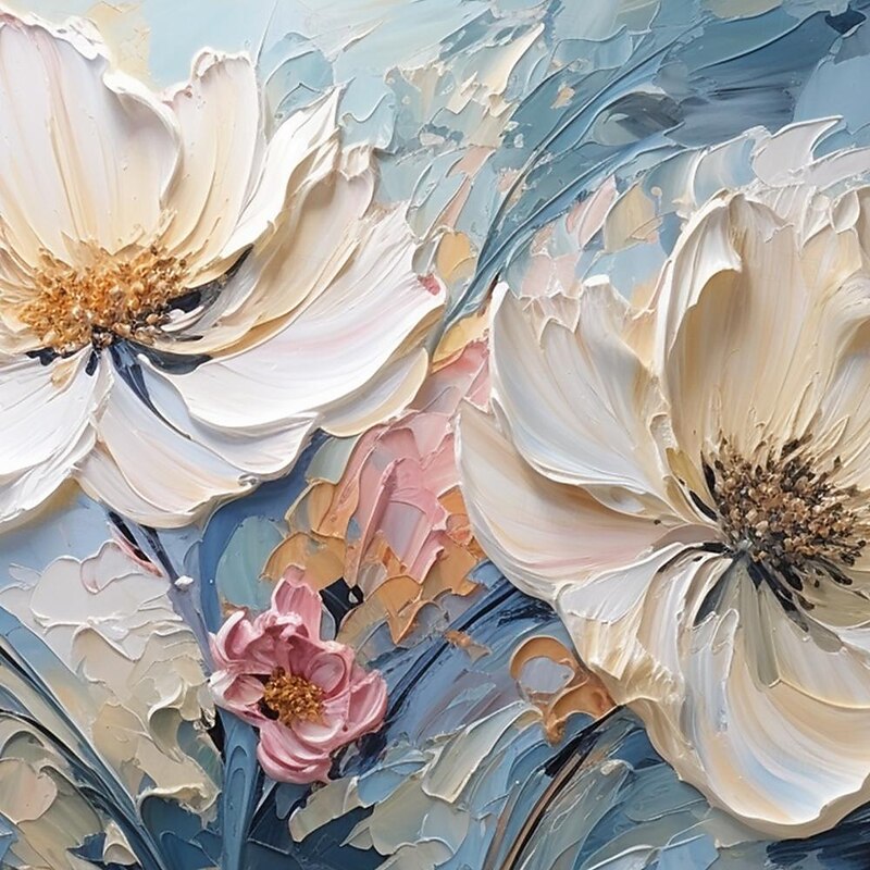Handmade Original Flower Oil Painting On Canvas Pink Wall Art Decor Thick Texture Blossom Painting for Home Decor With Stretched Frame/Without Inner Frame Painting 8