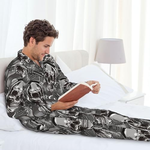 More information about Retro Electric Guitar Skulls Rock Music Mens Pajamas Set Button Down Sleepwear Set Long Sleeve Loungewear With Pockets