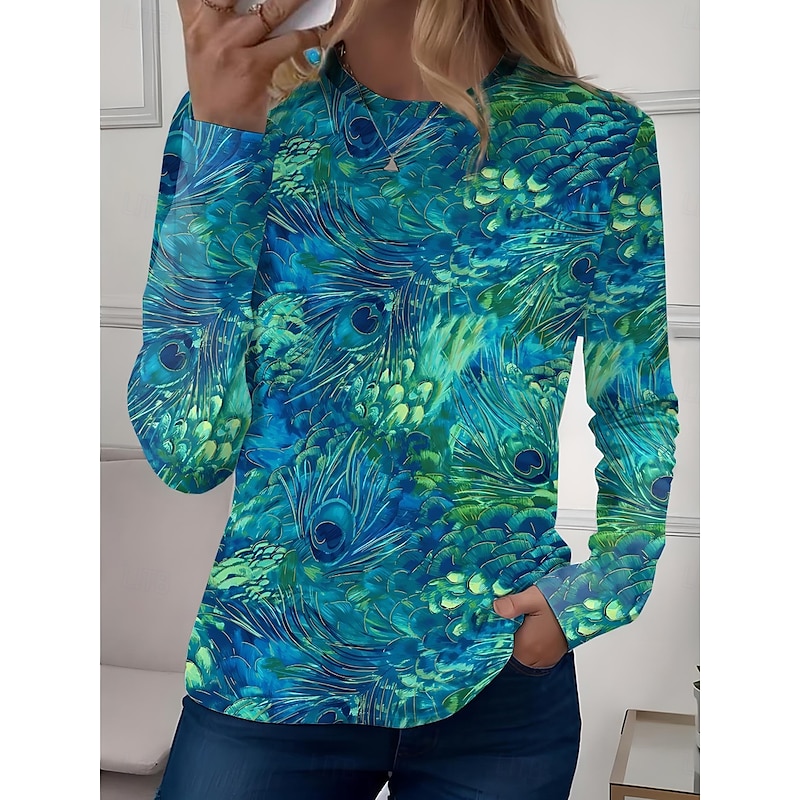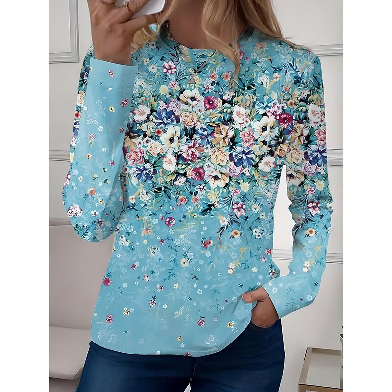 More information about Women's T shirt Long Sleeve Crew Neck Long Sleeve Tunic Floral Casual Regular Tops Daily Print Sage Green Pink Blue Sky Blue Purple Spring Fall Prefall