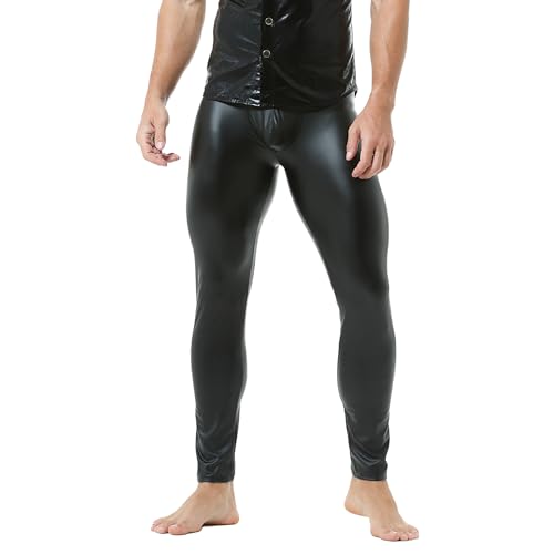 DTODWW Men's Faux Leather Activewear Leggings Slim Fit Tight Pants Long PU Pants Clubwear 6