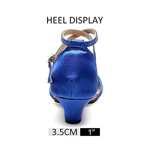 DKZSYIM Women's Satin Latin Dance Shoes Ballroom Salsa Performance Practice Dancing Shoes,Model LP-1213ZS 7