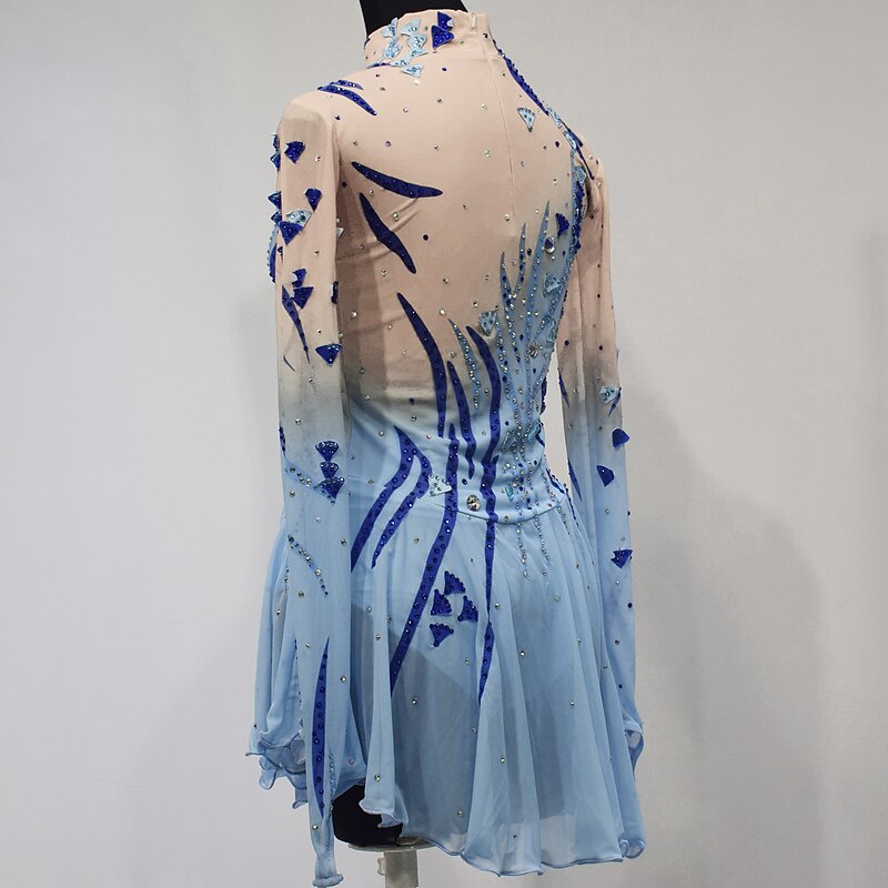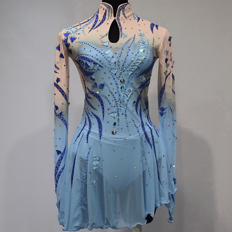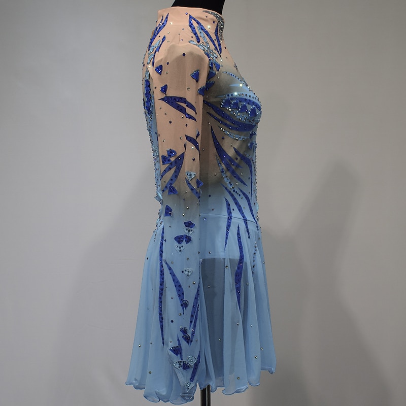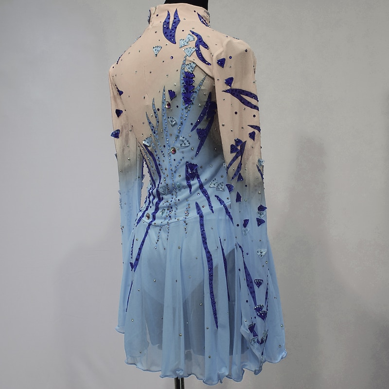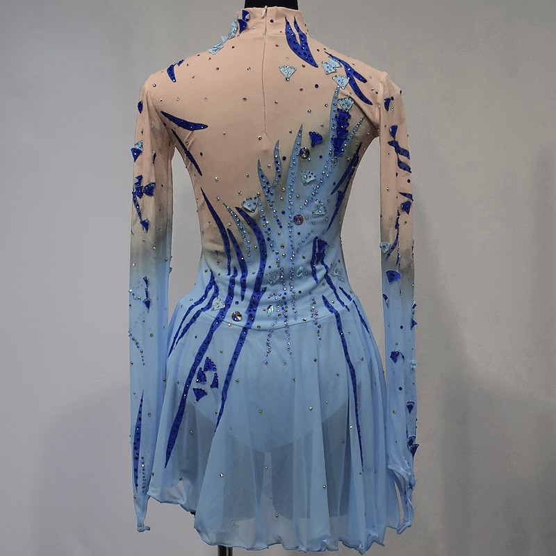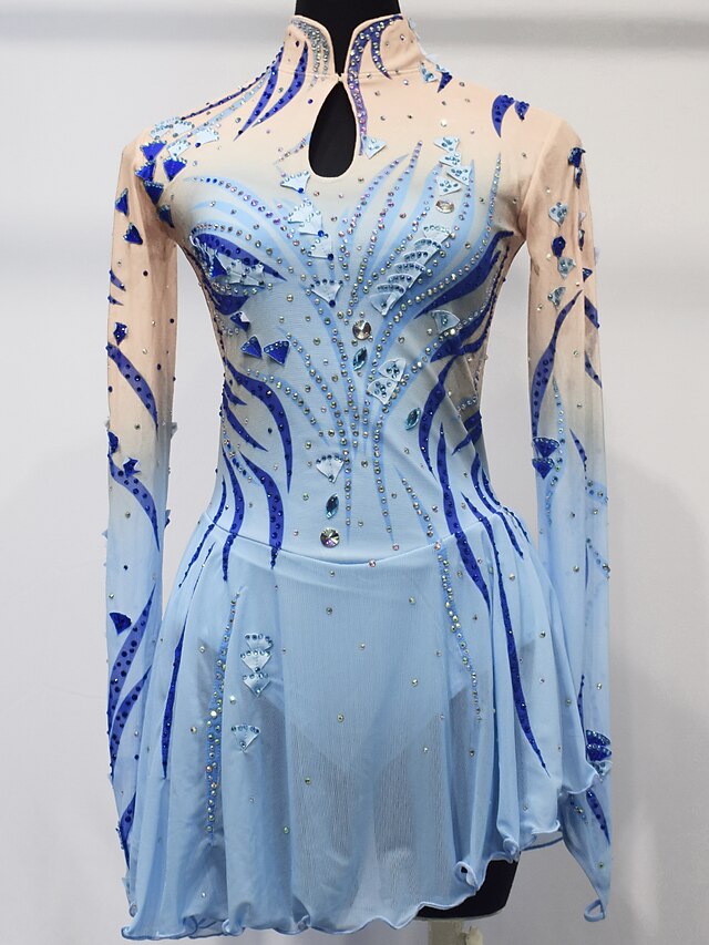 More information about Figure Skating Dress Women's Girls' Ice Skating Dress Outfits Sky Blue Mesh Spandex High Elasticity Competition Skating Wear Handmade Crystal / Rhinestone Long Sleeve Ice Skating Figure Skating