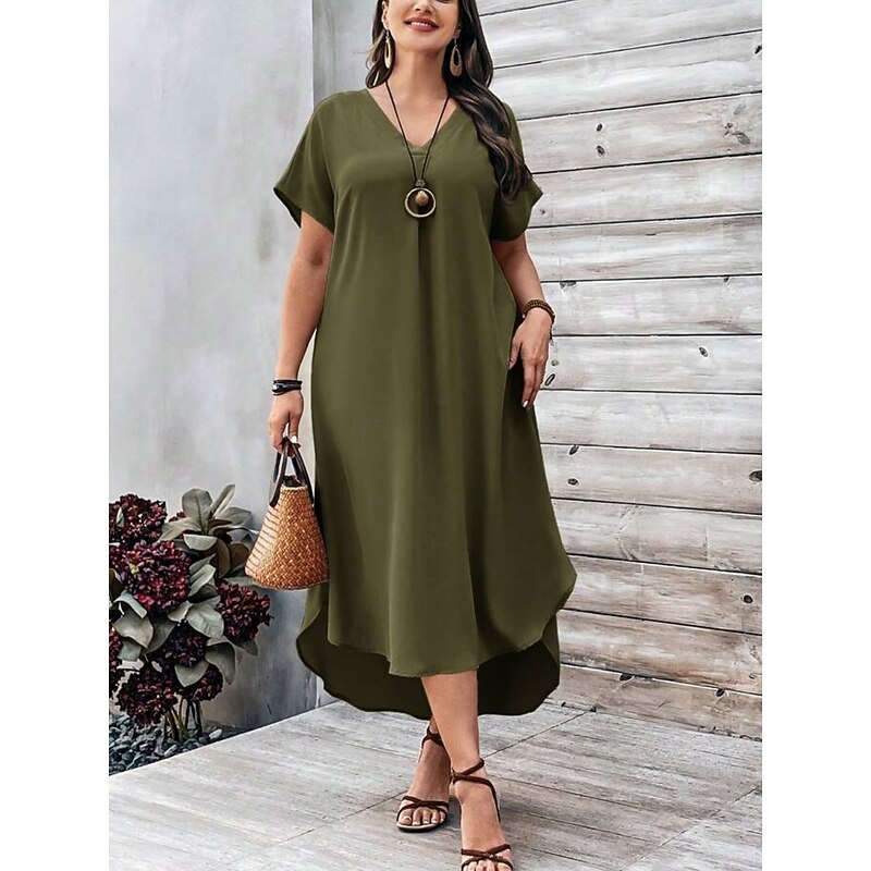 HOT ! Women's Plus Size Casual Dress Solid Color V Neck Short Sleeve Summer Spring Elegant Fashion Modern Casual Maxi long Dress Daily Holiday Dress