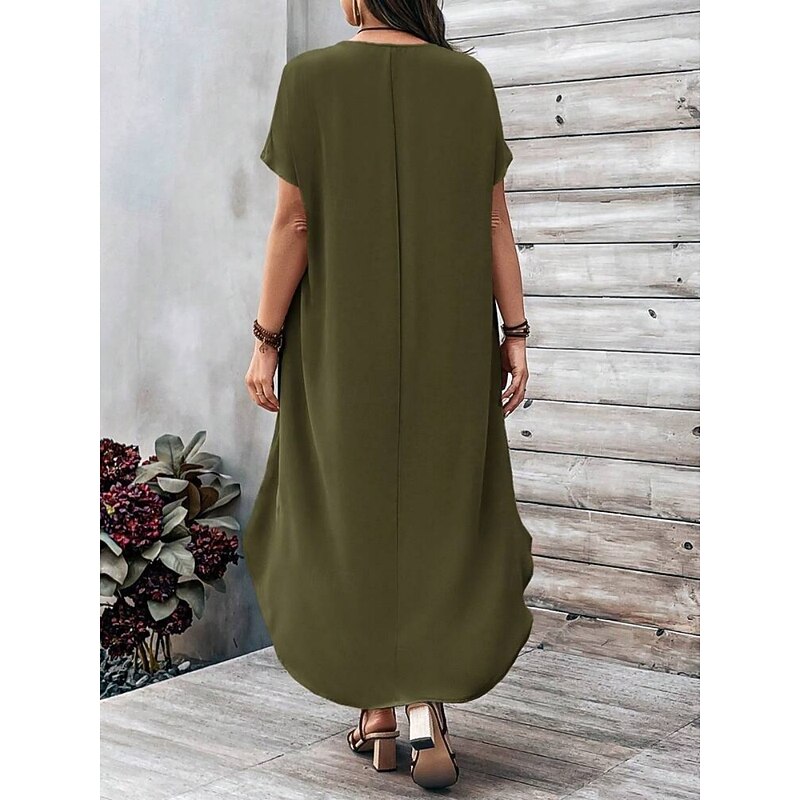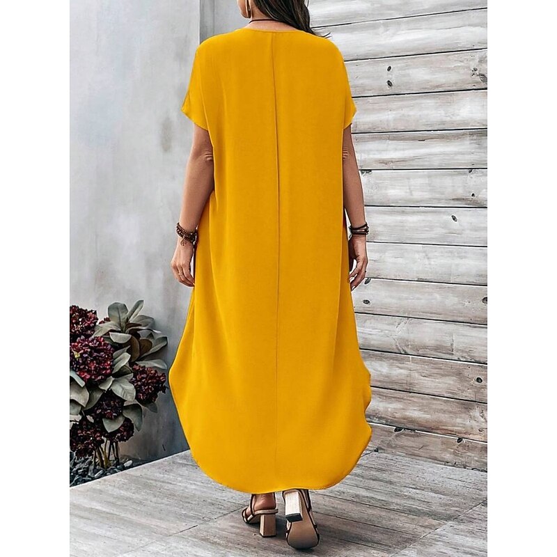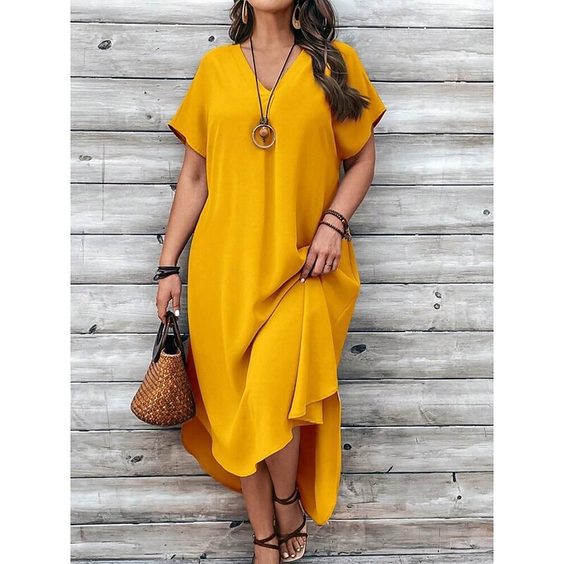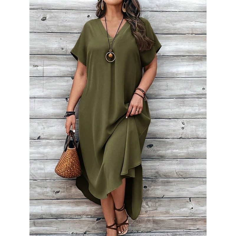 More information about Women's Plus Size Casual Dress Solid Color V Neck Short Sleeve Summer Spring Elegant Fashion Modern Casual Maxi long Dress Daily Holiday Dress