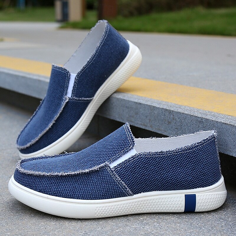 HOT ! Men's Blue Faux Leather and Knit Slip-On Loafers – Casual Breathable Walking Shoes for Daily Wear and Travel